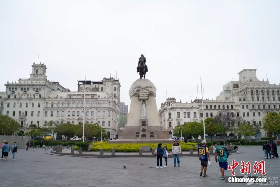 當(dāng)?shù)貢r間11月12日,秘魯首都利馬老城的圣馬丁廣場。中新社記者 盛佳鵬 攝