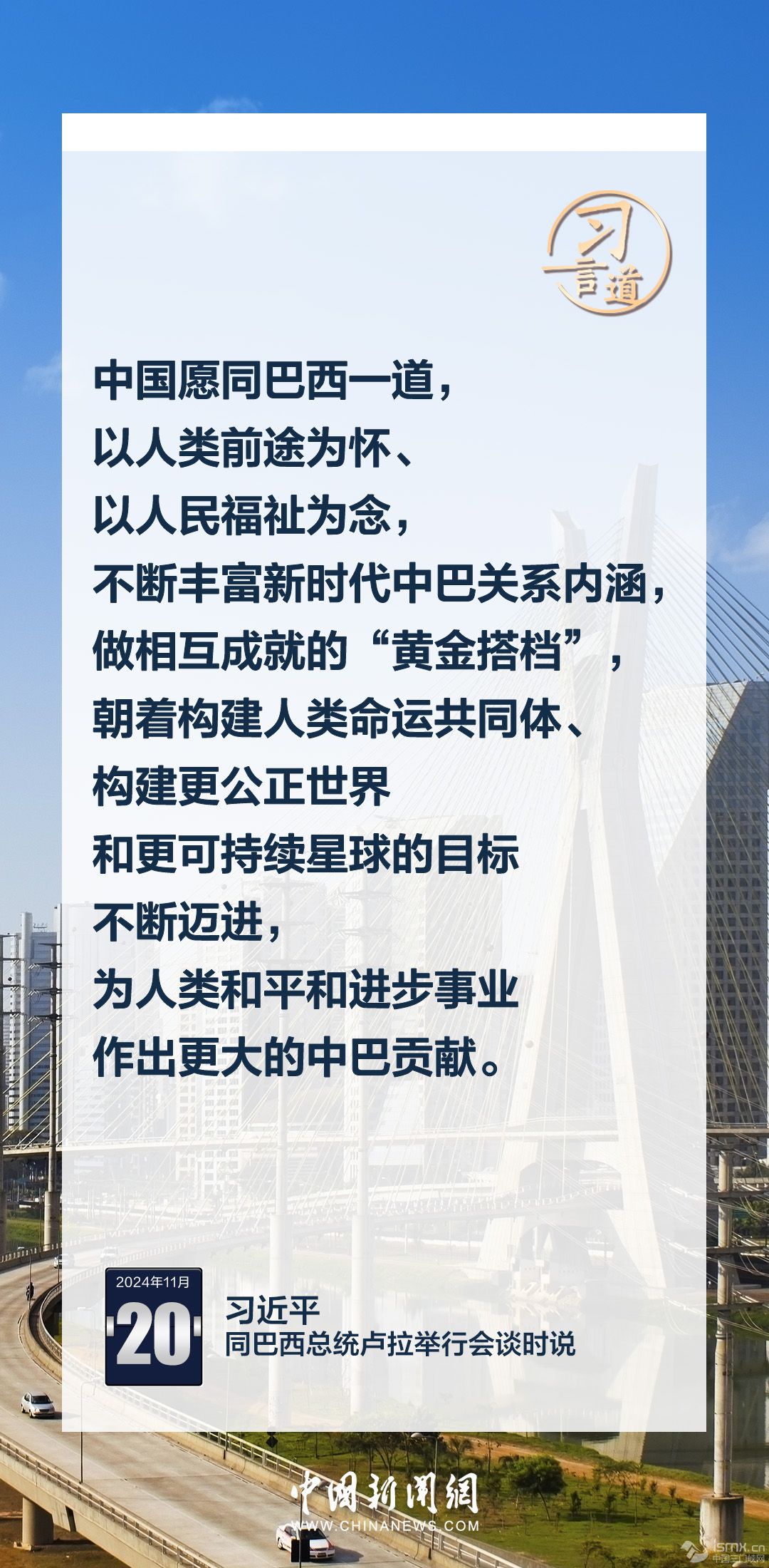 當(dāng)?shù)貢r間11月20日,中國國家主席習(xí)近平在巴西利亞總統(tǒng)官邸同巴西總統(tǒng)盧拉舉行會談。習(xí)近平指出——
