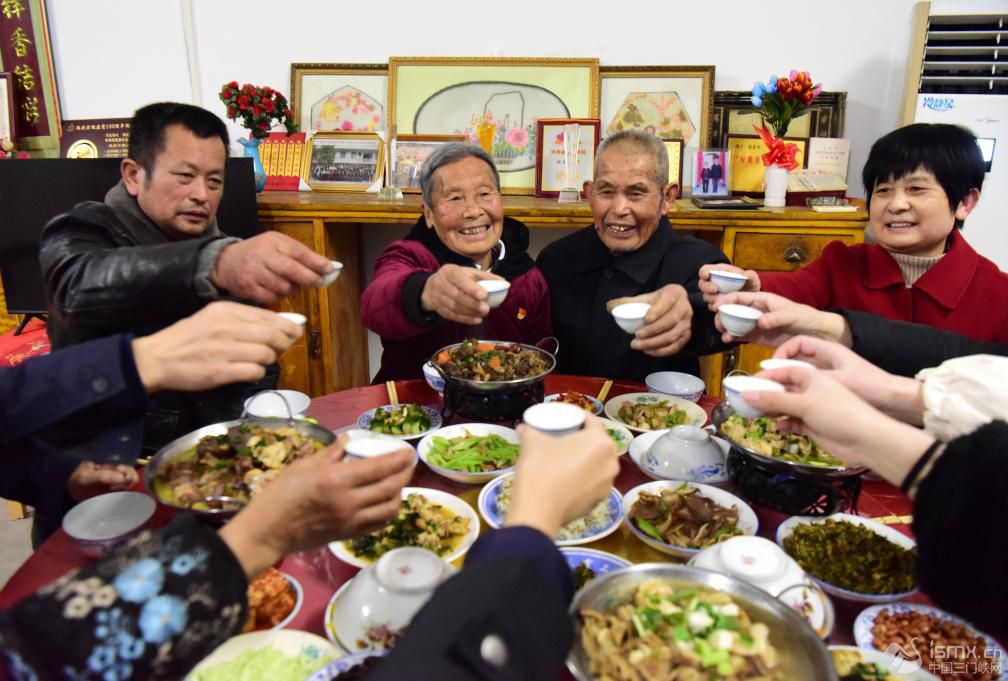 1月22日是北方農(nóng)歷小年,張愛華(左二)和家人一起吃團圓飯。新華社記者朱祥 攝 暮色四合,山窩窩里的潘灣組已是萬家燈火,家家戶戶都吃上了團圓飯。大爺大娘一家人圍坐桌前,清甜的羊肉、厚實的肉糕、飄香的臘肉、精致的扣碗、火熱的燉鍋擺了滿滿一桌。此起彼伏的“新年快樂”“身體健康”和大娘即席吟誦的詩句“茅屋變成小洋樓,野菜變成魚和肉;吃喝不愁樣樣有,生活過得很滿足”激起一片歡聲笑語。 大爺驕傲地夸起兒女們。四個兒女都有自己的事業(yè),六個孫輩都是大學生,其中還有兩個是研究生。 “你們是怎么把孩子培養(yǎng)成才的?” “我怎么走路,他們就怎么走。踏踏實實,一點雨要一點濕。”大娘的話樸實卻有深意。 酒至半酣,大娘撫摸著面前一只醬色的陶制酒壺和白色酒杯,講起了往事,聲音純凈而動人。 “這套酒壺酒杯不好看,但有意思(義),我洗得很干凈。它是老領導、老紅軍劉名榜來家里吃飯時用過的。” “今天的團圓飯菜單是二女兒擬的,吃的是紅軍宴。沒有大魚大肉,都是山里菜。28個菜,代表著大別山‘28年紅旗不倒’。” “這盤野菜叫珍珠花,也叫將軍菜,當年紅軍就靠它過日子。那些豆腐乳、腌蘿卜都是我自己做的,劉名榜最愛吃。他對我說,吃席都要上,不能忘本。” 我們停下酒杯靜靜地聽,品味著這場不尋常的團圓飯。 (二)長征 天色漸明,蒙蒙細雨把大別山籠罩在一片寒冬的灰色中。張愛華換上軍綠色的解放鞋,戴上棕黃色的毛線帽,拿著鐮刀,領著大爺和兒孫們從潘灣出發(fā),開始每次團聚之后最重要的儀式——巡山。 這是張愛華一家?guī)状说?ldquo;長征”。 群山環(huán)抱的潘灣是劉名榜等先輩先烈?guī)ьI革命武裝堅守大別山“28年紅旗不倒”的核心地帶。不足兩百人的村莊,家家有烈士,戶戶有紅軍,先后有80余人壯烈犧牲,把鮮血播撒在這片紅色的群山間。
