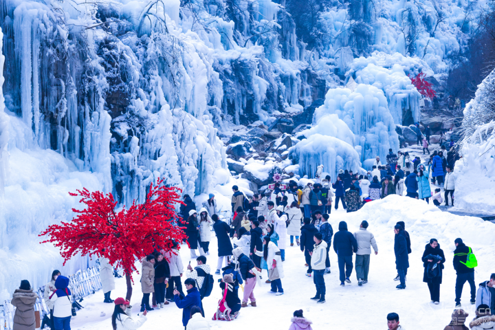 云臺山“漢服花朝節(jié)”現(xiàn)場。 云臺山圍繞漢獻(xiàn)帝和曹皇后的故事打造漢服花朝節(jié),引領(lǐng)春季旅游潮;延續(xù)嵇康“廣陵散”的韻律,連續(xù)舉辦音樂節(jié)、電音節(jié),引爆整個夏天;舉辦以尋訪“竹林七賢”品味魏晉風(fēng)骨、打卡王維詩里的云臺山等為主題的登高節(jié),帶領(lǐng)游客品讀秋天的靜美;圍繞“山海經(jīng)里的冰雪世界”主題策劃冰雪節(jié),“冷經(jīng)濟(jì)”在冬日引發(fā)“熱效應(yīng)”…… 路紫婷介紹,這些創(chuàng)意活動,在自媒體上形成了強大的網(wǎng)紅效應(yīng)和IP引流,廣受年輕人喜愛,讓云臺山一年四季都有風(fēng)景、有故事、有體驗。 按照“旅游+文化”“旅游+音樂”“旅游+體育”等思路,云臺山正深入探索單一山水旅游向文化、休閑、娛樂、體驗等綜合旅游轉(zhuǎn)型的新模式。 2024年元旦,以“山海經(jīng)里的冰雪世界”為主題的云臺山冰雪節(jié)啟動,視頻“走進(jìn)云臺山,打開山海經(jīng)”廣為傳播,“讀山海經(jīng) 品上古神話”等話題全網(wǎng)曝光量達(dá)到204億。“王維詩里的云臺山”“竹林七賢魏晉風(fēng)骨”“14億年云臺地貌奇觀”等話題在抖音、快手、小紅書等新媒體平臺上掀起熱潮。 由中國社科院等部門組建的中國文旅產(chǎn)業(yè)指數(shù)實驗室發(fā)布的數(shù)據(jù)顯示,云臺山在全國5A級景區(qū)新媒體傳播影響力排名中多次獲得全國前三、河南第一的成績。 得益于轉(zhuǎn)型發(fā)展,云臺山客群結(jié)構(gòu)已然發(fā)生了質(zhì)的轉(zhuǎn)變。據(jù)云臺山智慧旅游平臺數(shù)據(jù)統(tǒng)計,年輕人占比高達(dá)70%。云臺山也借助文旅融合成功塑造了“年輕、時尚、活力、多元”的新形象,實現(xiàn)了從“老牌山水景區(qū)”到“青春云臺山”的蝶變。 在文旅融合的引領(lǐng)下,云臺山發(fā)展也達(dá)到了新的高度。2024年云臺山景區(qū)共接待游客743.83萬人次,收入達(dá)7.59億元。 富了一方百姓 “上山”之前,賈樹紅一直在修武縣城開門市部,直到2006年,她才在小妹的極力邀請下,來到云臺山開起了酒店。 “在山上比我在縣城開門市部掙得多,‘含金量’很高。”賈樹紅故作“埋怨”地打趣道,云臺山做起來了,“怎么不早點讓我上山做生意呢?”